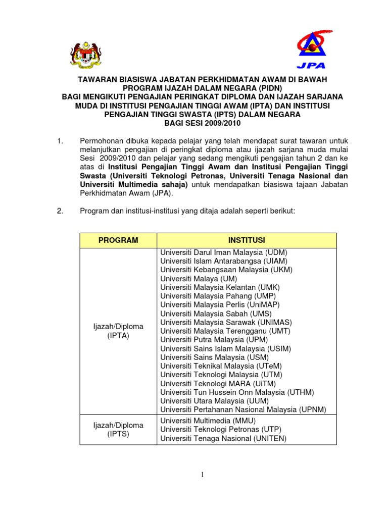 Syarat Permohonan Biasiswa Jpa Pidn Diploma Dan Ijazah Sarjana Muda Pendidikanmalaysia Com