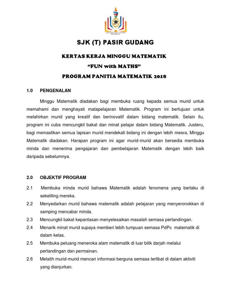 Contoh kertas kerja program sekolah. Antara program wajib hampir setiap Panitia rancangkan dalam setiap tahun adalah Minggu Panitia. Kertas kerja bengkel math1 1.